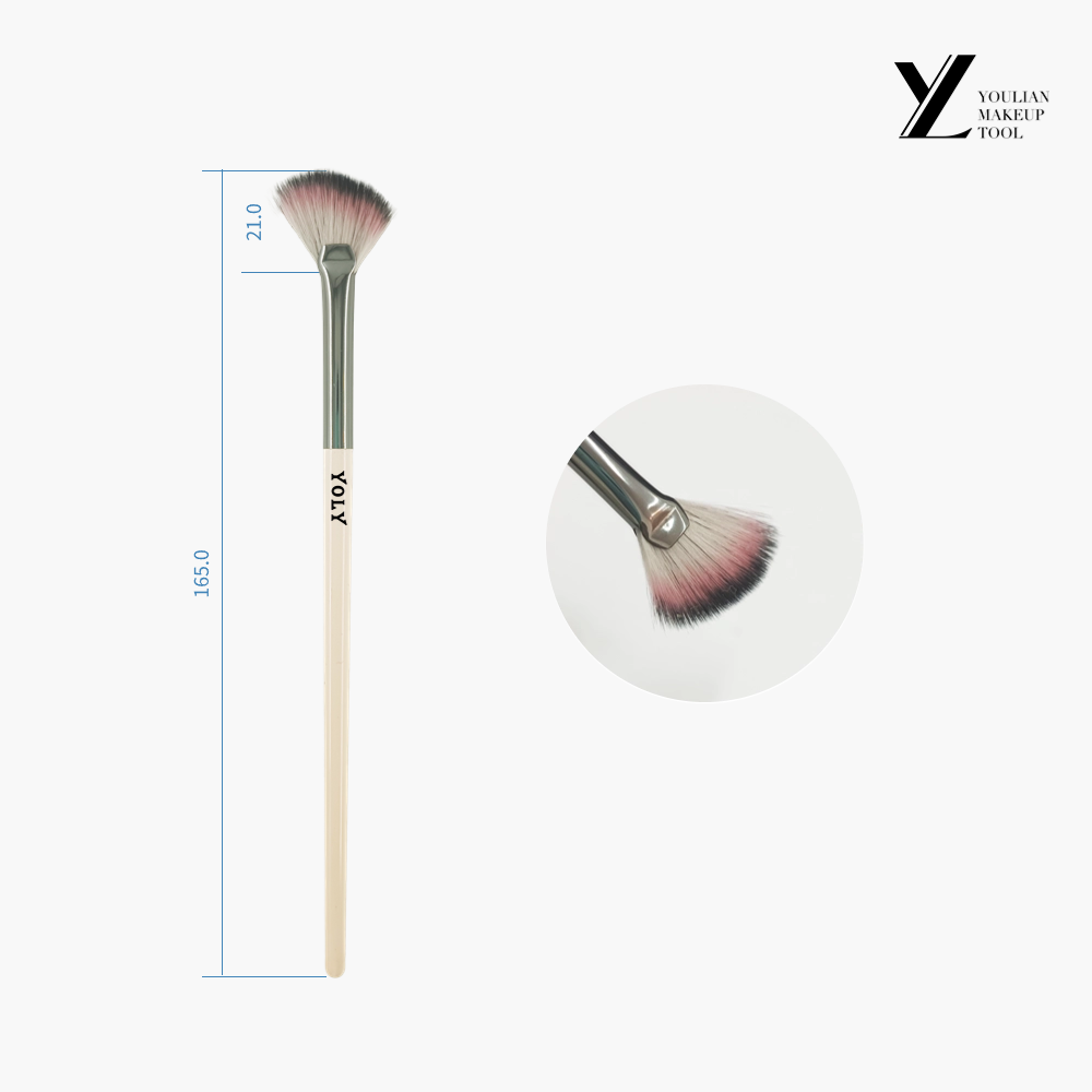 หัวแปรงนั้นมีรูปร่างเป็นพัดลมทำมุมทำให้สามารถใช้พื้นที่ทำมุมได้อย่างแม่นยำเช่นโหนกแก้มและวัด สิ่งนี้ช่วยให้แปรงสามารถทำได้อย่างยอดเยี่ยมในการสร้างเส้นโค้งและการไฮไลต์ทำให้ง่ายต่อการวาดรูปทรงลึก